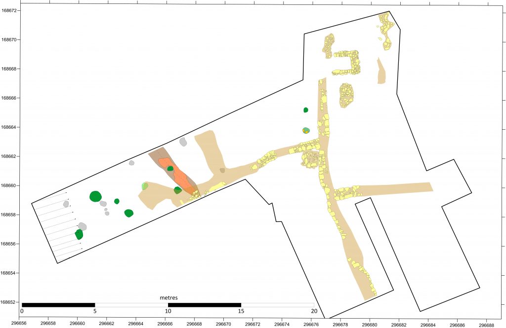 All features in the main trench interpreted to be of later medieval age, as of winter 25/26.